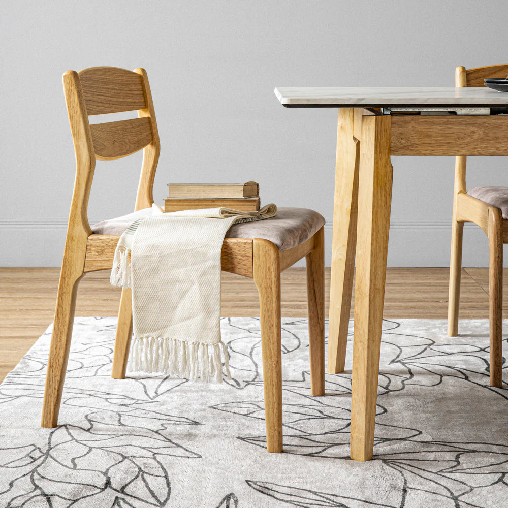The REVA Dining Chair blends timeless elegance with modern minimalism. Designed for both comfort and durability, it features a solid Malaysian oak frame paired with a cushioned seat upholstered in soft Arctus fabric. Stylish yet practical, the REVA chair is a refined addition to any contemporary dining space.